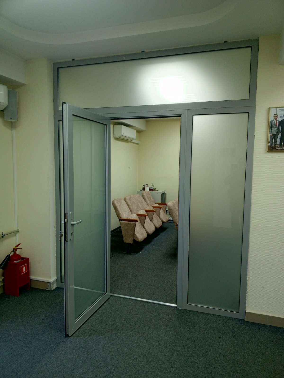 Алюминиевая перегородка с дверью, глухая алюминиевая перегородка